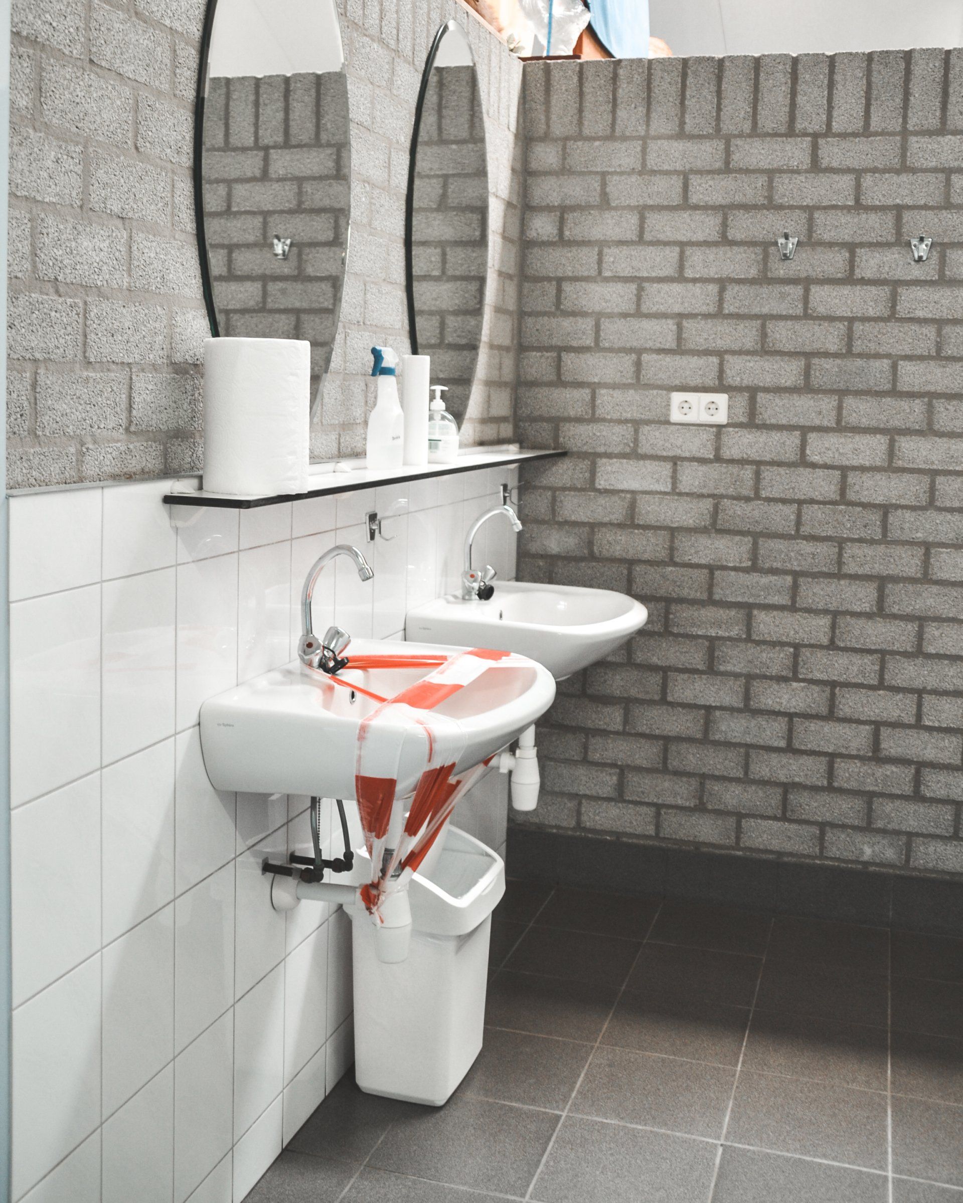 Door Covid-19 kan er momenteel een wastafel gebruikt worden.